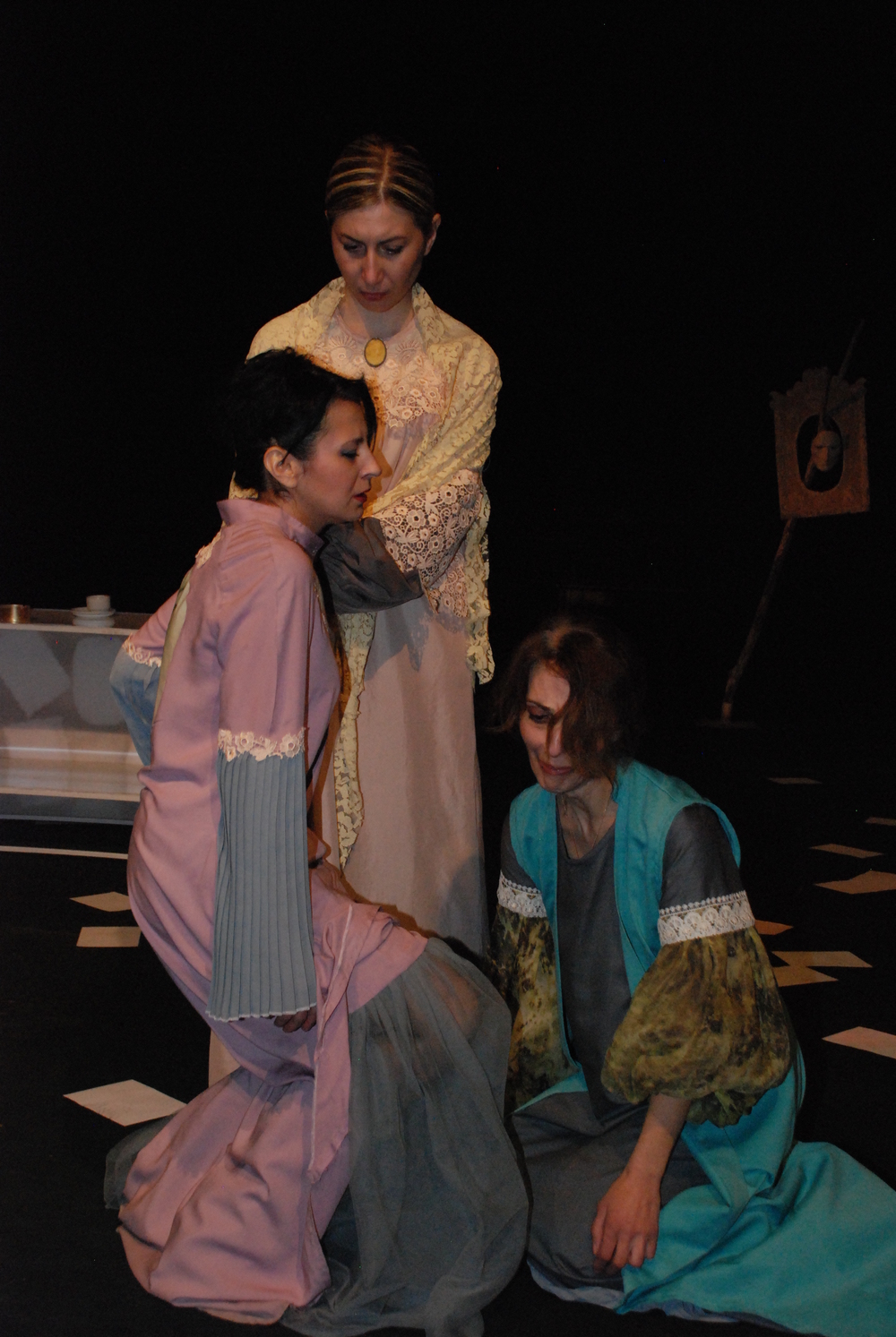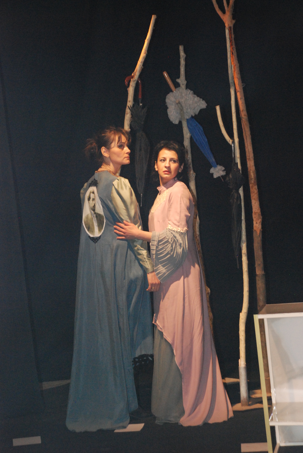 თითოეულ პერსონაჟს რამოდენიმე მსახიობი განასახიერებს. სცენაზე ერთ დარისპანს მეორე დარისპანი ცვლის, ერთ მართას – მეორე მართა და ასე შემდეგ. რამოდენიმე მართა, პელაგია, დარისპანი, კაროჟნა და სხვა პერსონაჟები მიგვანიშნებენ, რომ სპექტაკლში ასახული პრობლემები მხოლოდ ერთი ადამიანის, მხოლოდ ერთი პერსონაჟის პრომლემა არ არის... დავით კლდიაშვილის ნაწარმოებებისათვის დამახასიათებელი უბრალოება და სისადავე, ტრაგიკულისა და კომიკურის მონაცვლეობა, მსუბუქს და ამავდროულად ტკივილიანს ხდის სპექტაკლს.